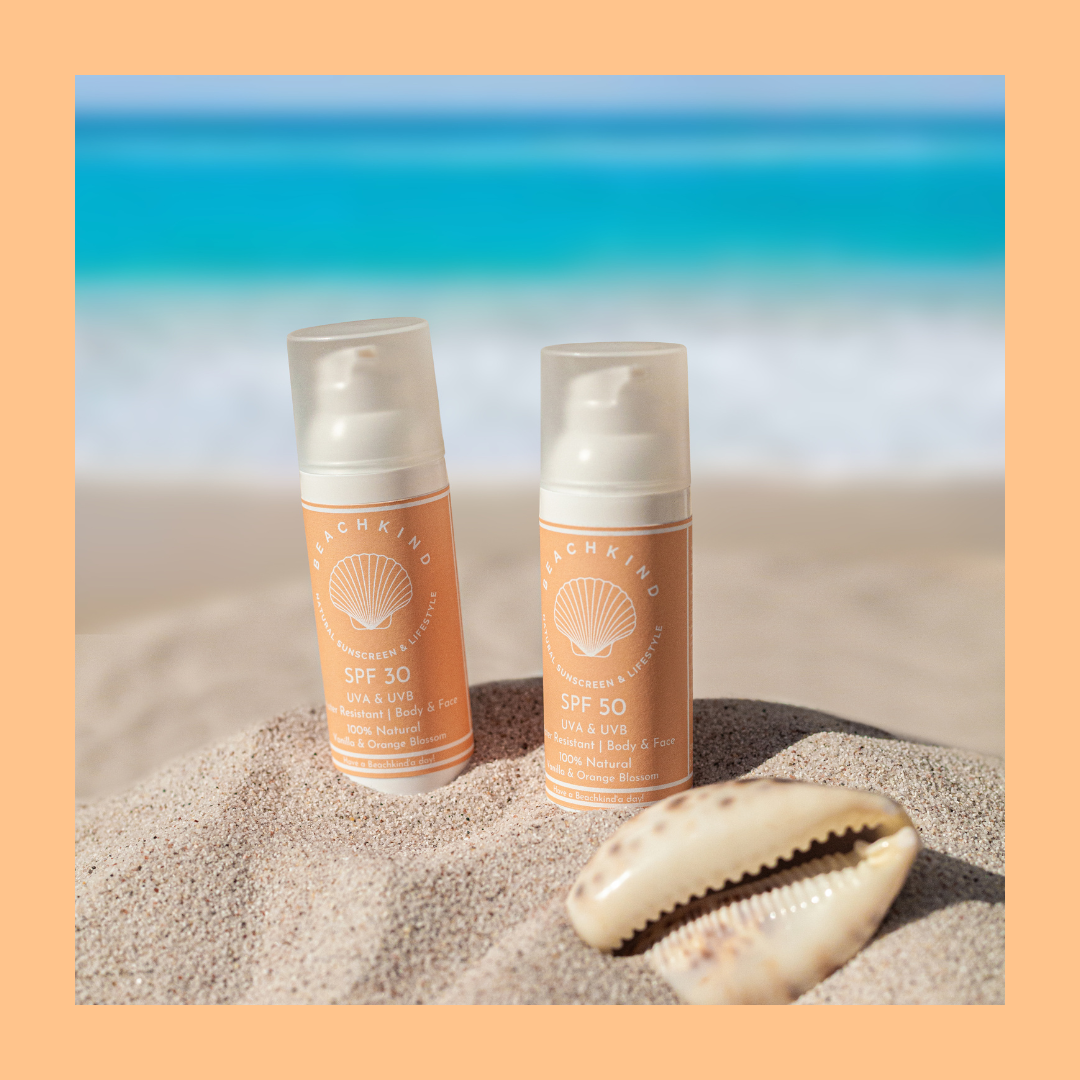 Beachkind Natural Sunscreen är en naturlig solkräm som skyddar din hud mot de skadliga effekterna av UV-strålning med ett mineralfilter baserat på icke-nano zinkoxid. Vår Zinkoxid är så kallad ”Invisible Zinc” vilket betyder att du inte får en vit hinna av solkrämen. Solkrämen passar alla hudtyper, även din! Solskyddet är fullt av naturliga milda oljor, smör och vaxer, vilket gör solkrämen både lättapplicerad och återfuktande. Bland annat använder vi sötmandelolja, sheasmör, hallonfröolja och vetegroddsolja. Vi har även valt att använda torrolja utav kokos som bas som har ett lågt komedogent index för att undvika att porerna täpps igen.